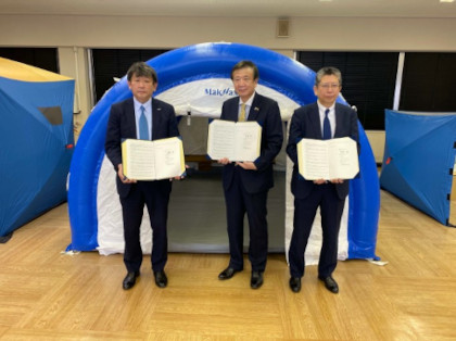 日、災害時における天幕など資器材の供給に関する協定を締結した。市の要請に応じ、両社はエアテントや間仕切り、天幕大型テントなどを優先的に提供する。